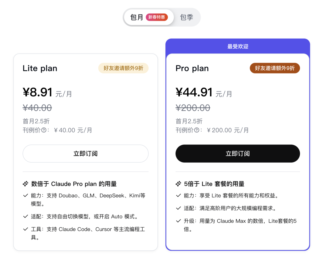 - 方舟 Coding Plan:已支持此模型,首月低至 8.91 元,“新春限时特惠 × 二月特别补贴”。