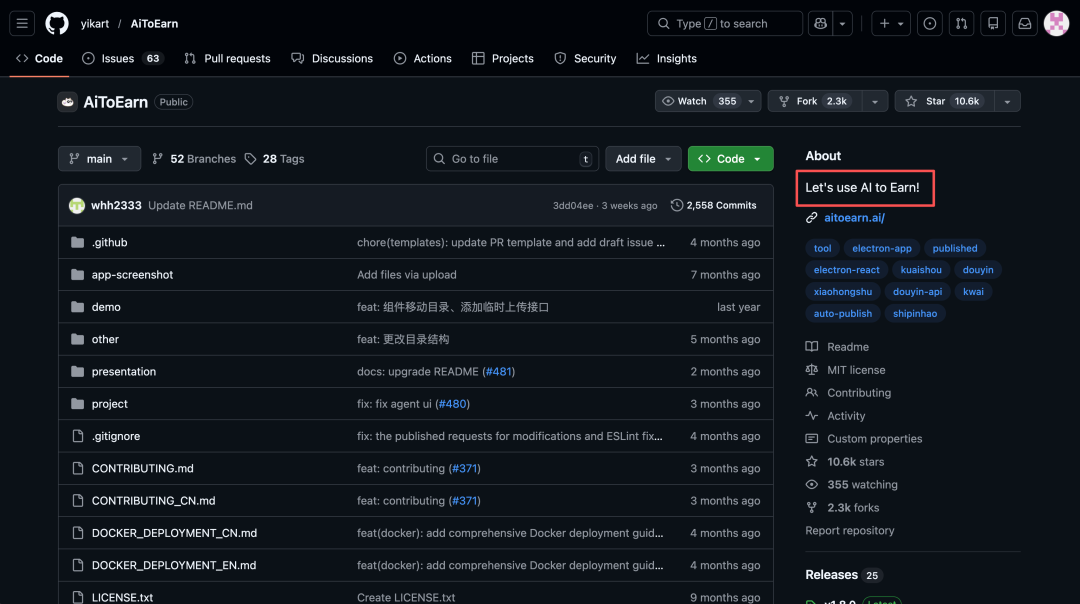最近在梳理开源项目时,发现了一个在 GitHub 获得 1 万+ Star 的项目——AiToEarn。