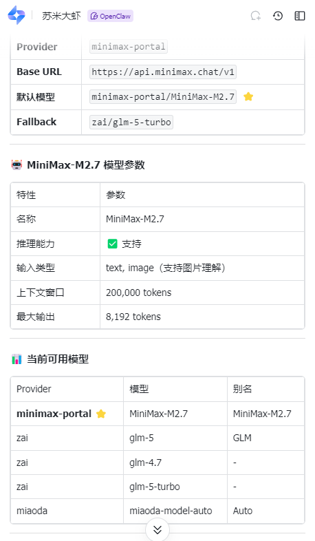 不过就我体验了各家的Coding Plan对比来讲,GLM和MiniMax在Openclaw和claude中使用,无论从对话质量还是模型能力来说都能与Claude Opus 4.6、GPT 5.4 不相上下