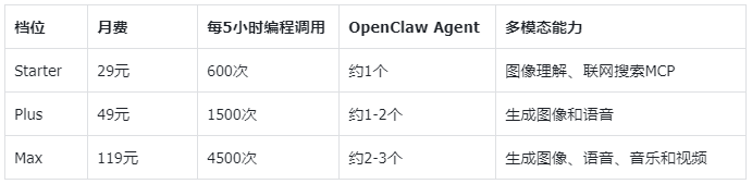 29元起步价,一个API Key支持编程、图像生成、语音、视频四种能力。