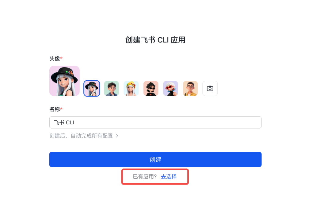 如果已有应用,可直接选择与OpenClaw绑定的飞书应用。