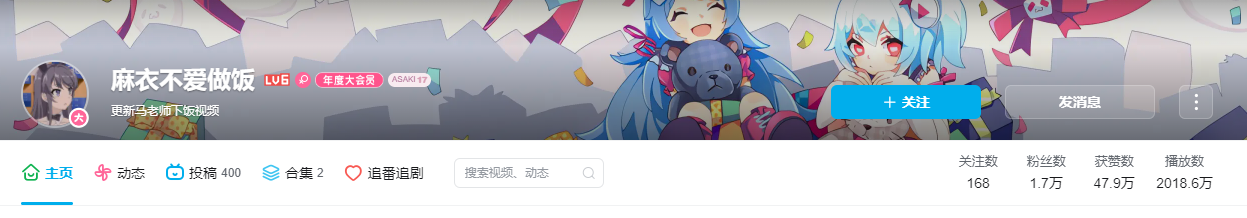项目作者用 ChopperBot 打造的 B 站账号「麻衣不爱做饭」,已经突破千万播放量。