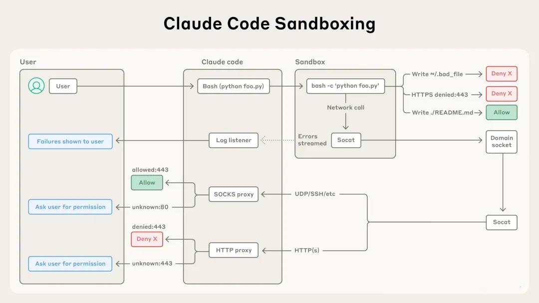 Anthropic 非常重视安全。Claude Code 的网页版和新的 Bash 工具都建立在沙盒技术之上。沙盒为 Claude 的运行提供了一个安全、隔离的环境。
