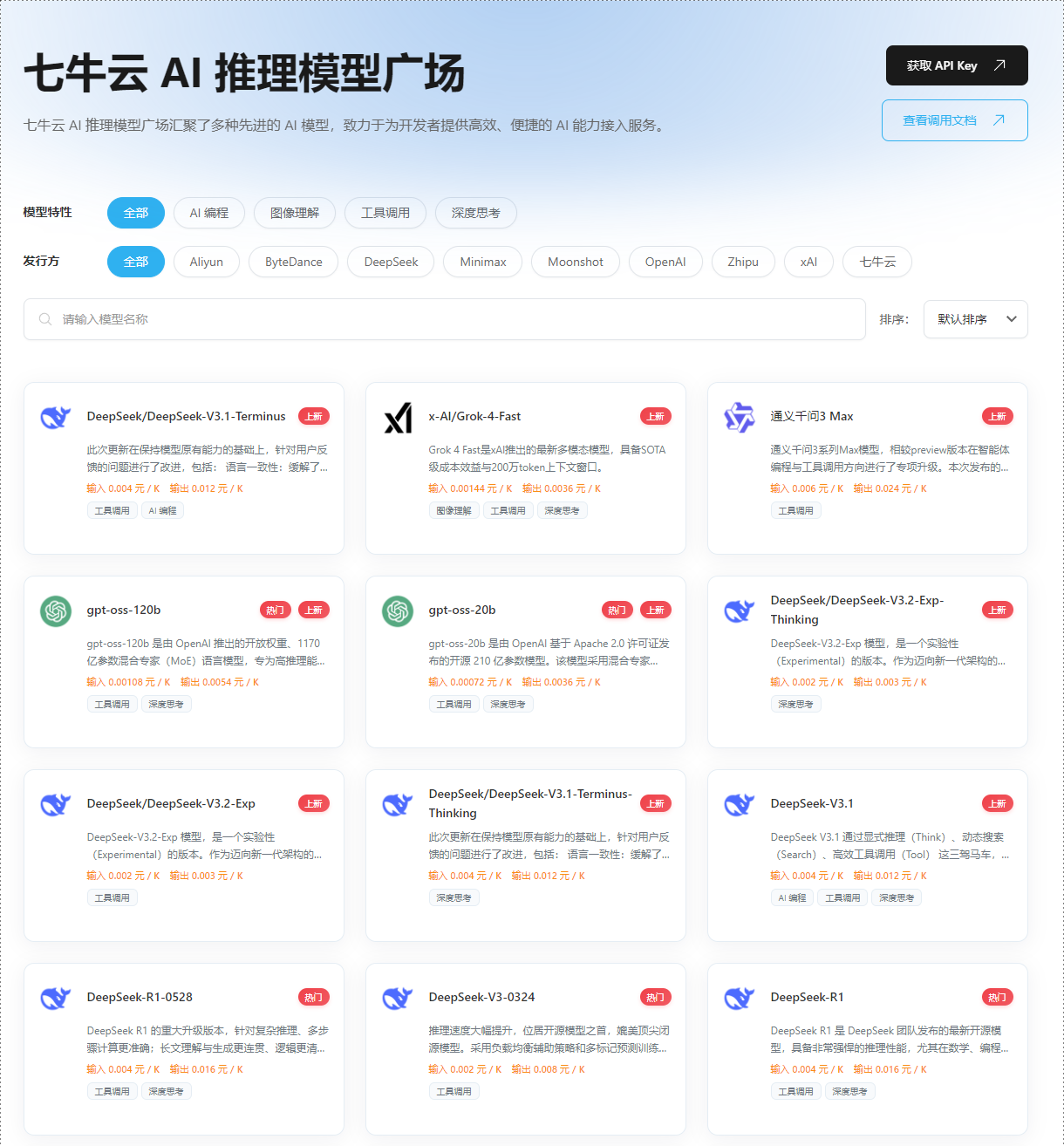 七牛云 AI 大模型推理服务平台,模型全,支持调用 50+ 海内外顶级大模型,而且是合规调用 Claude、Gemini、Grok等海外顶级闭源模型,这一点目前国内各大厂是较少见到的(那些中转站就算了吧,稳定性堪忧)!