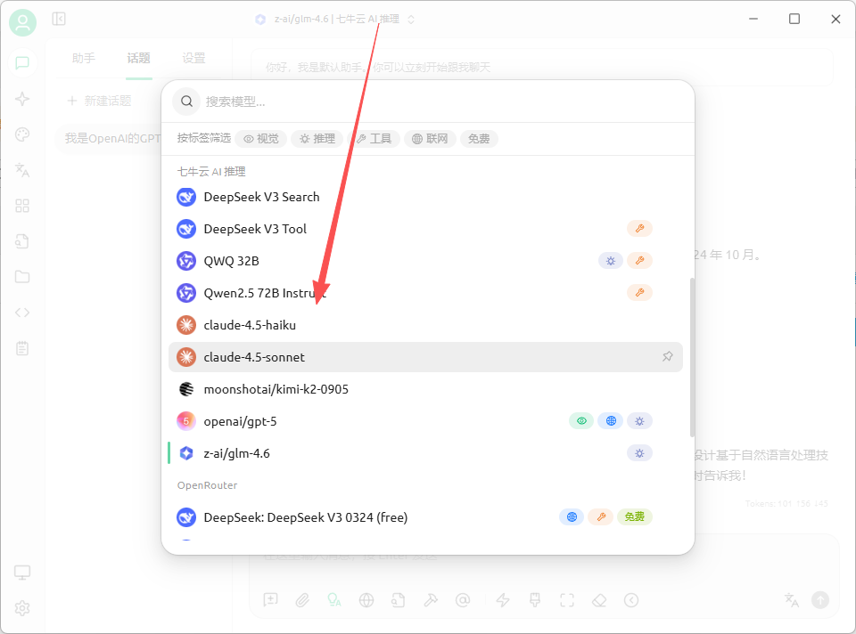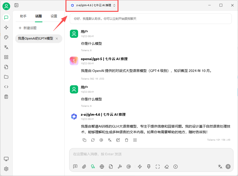 回到默认对话助手就要以测试了