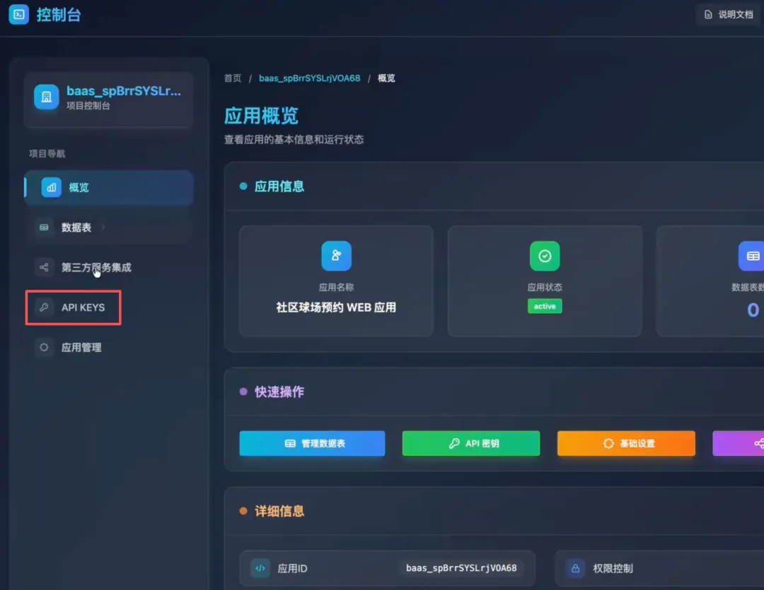 普通 AI 生成的应用通常只能做到前端展示,但通过接入 AipexBase,系统具备了用户登录、球场信息管理、预约操作等完整的后端逻辑。