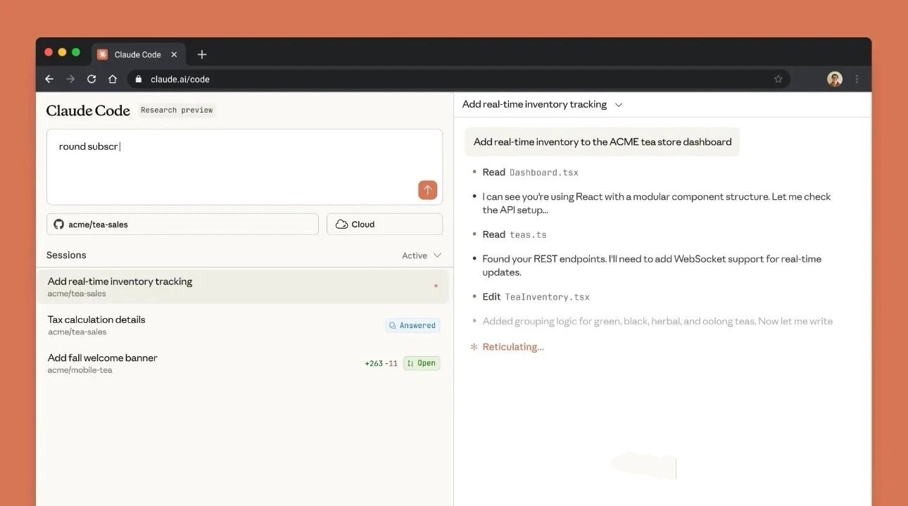 )功能,这种方式方便用户直接从浏览器中委派编程任务到云端。但网页版还处于 Beta 阶段,仅作为研究预览版向 Pro 和 Max 用户开放使用。