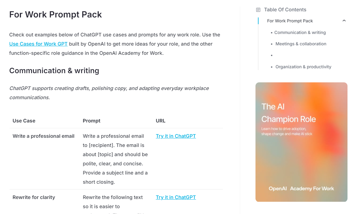 Prompt Packs 是 OpenAI 官方提供的提示词集合,旨在帮助用户在不编写复杂提示的情况下高效使用 ChatGPT。每个 Prompt Pack 针对特定职业角色,提供结构化、经过验证的提示词模板。