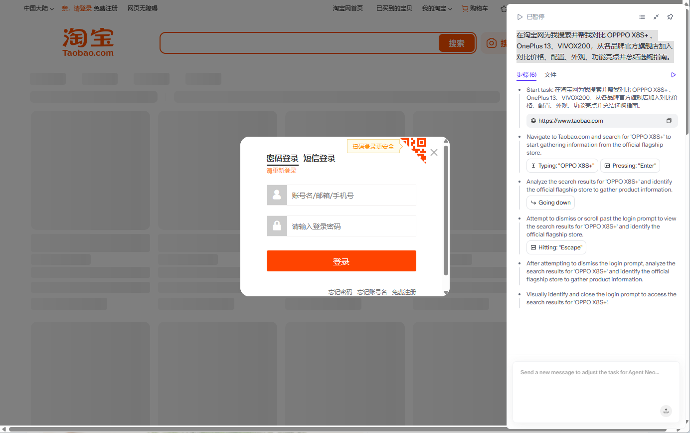 FlowithOS整个过程是:自动打开淘宝 → 登录 → 搜索 → 进入各品牌旗舰店 → 整理信息 → 输出一个 .md 文件