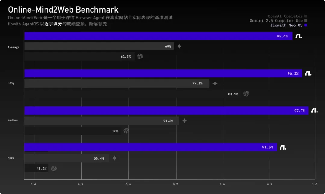 在权威评测 Online-Mind2Web 中,它甚至击败了 Google Gemini 和 OpenAI Atlas,拿下几乎满分的成绩。