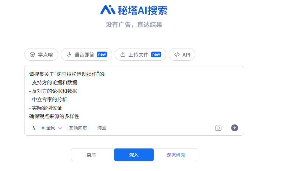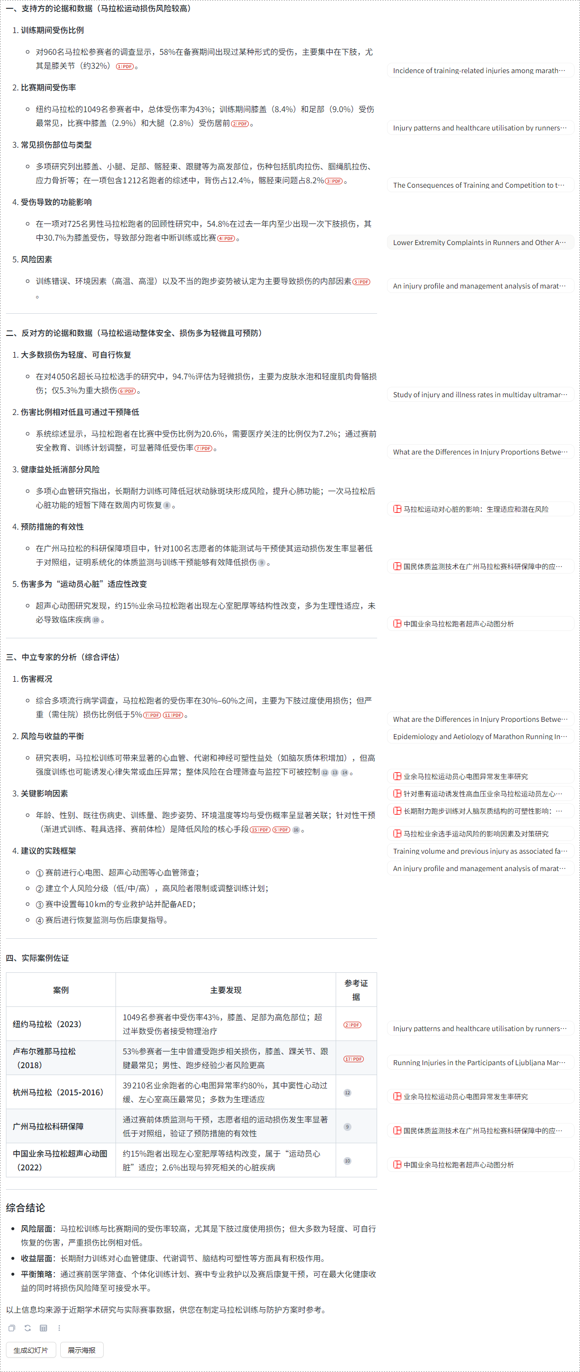 上个月讨论"跑马拉松运动损伤"时,我用这个方法搜了"马拉松运动的损伤风险"。几秒钟就得到了正反两方的数据,还有第三方机构的分析报告。更重要的是,AI会标注信源网站,我能快速判断可信度。