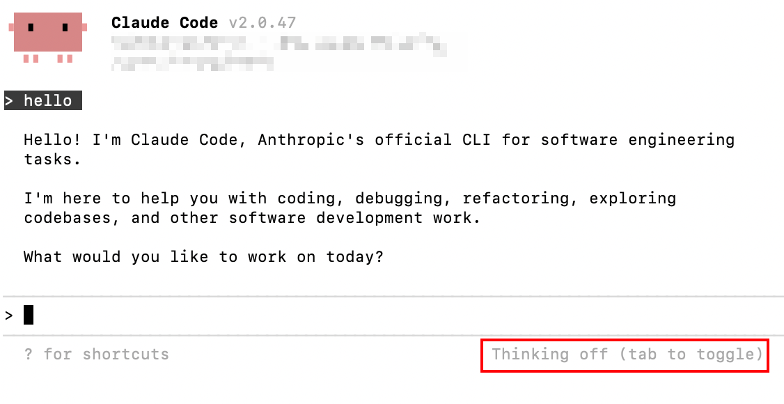 注意:MiMo-V2-Flash 模型暂不适配 Claude Code 思考模式,需在 Thinking off 模式下使用(tab 键切换)。