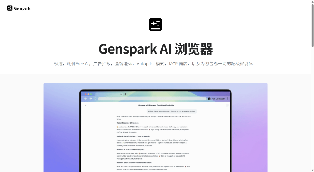 简介:Genspark推出的AI浏览器,强调自动化任务执行。