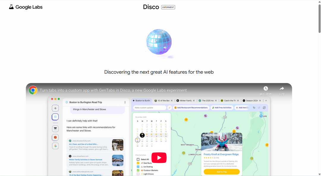 - 核心功能GenTabs,利用Gemini 3模型将标签页转化为定制化交互式应用