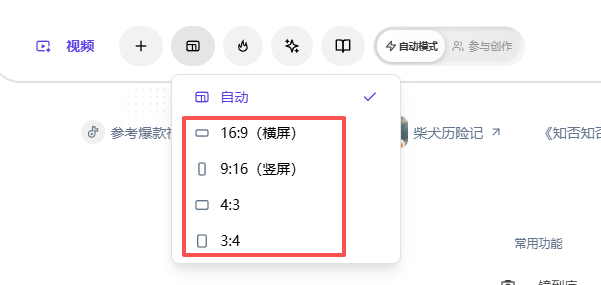 参考图与比例:在输入框下方添加参考图,设定视频纵横比(常见:9:16、1:1、16:9)。