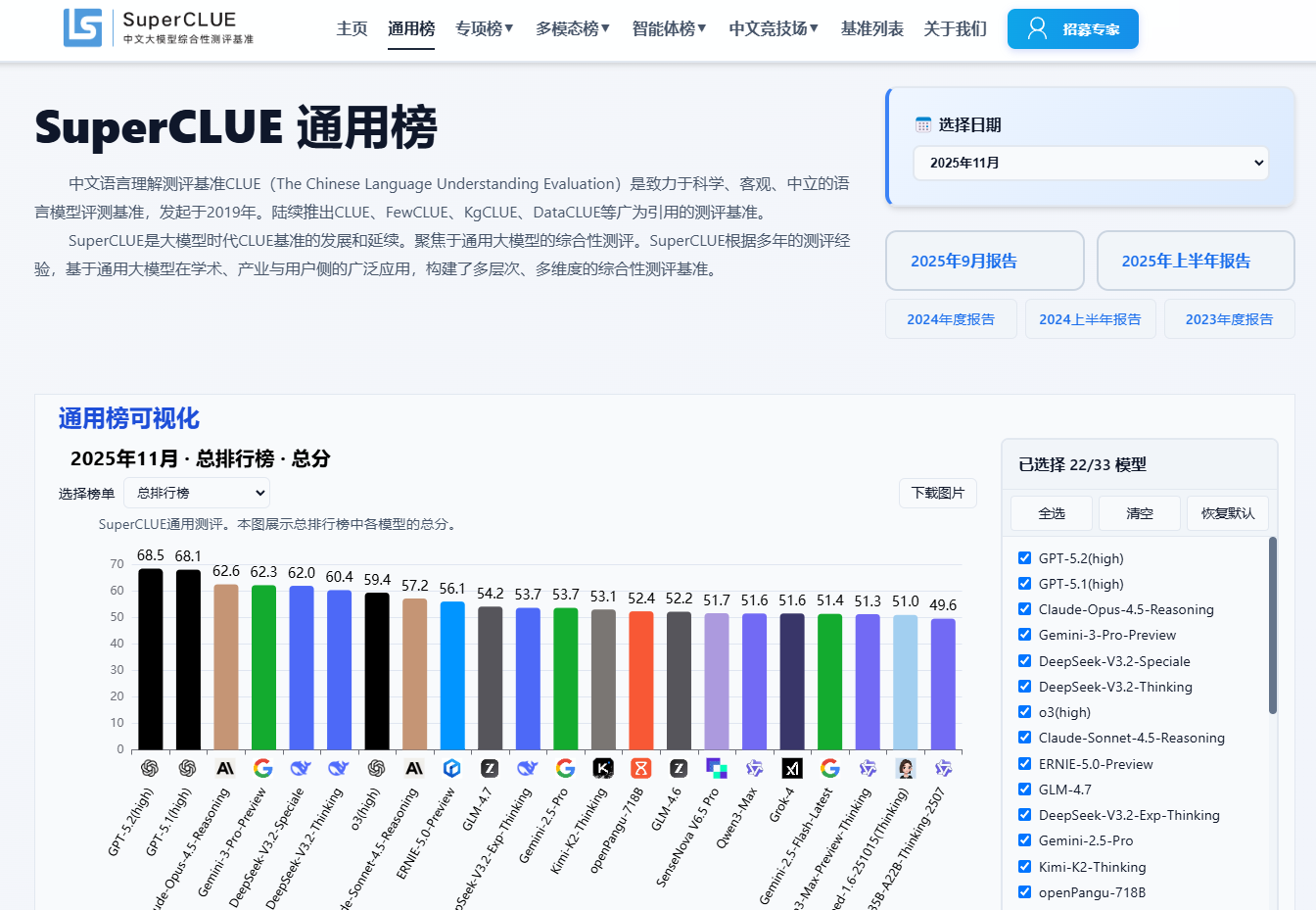 专项榜单:https://www.superclueai.com/benchmarkselection?category=specialized
