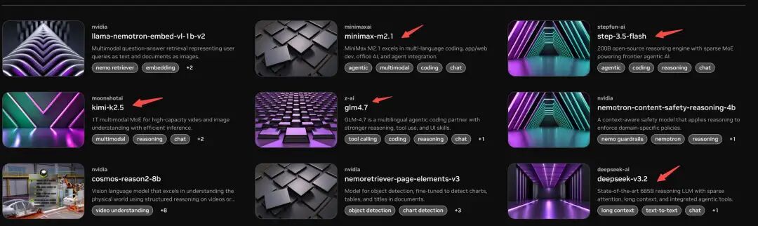 Nvidia NIM 平台集成了多个开源模型,主要包括: