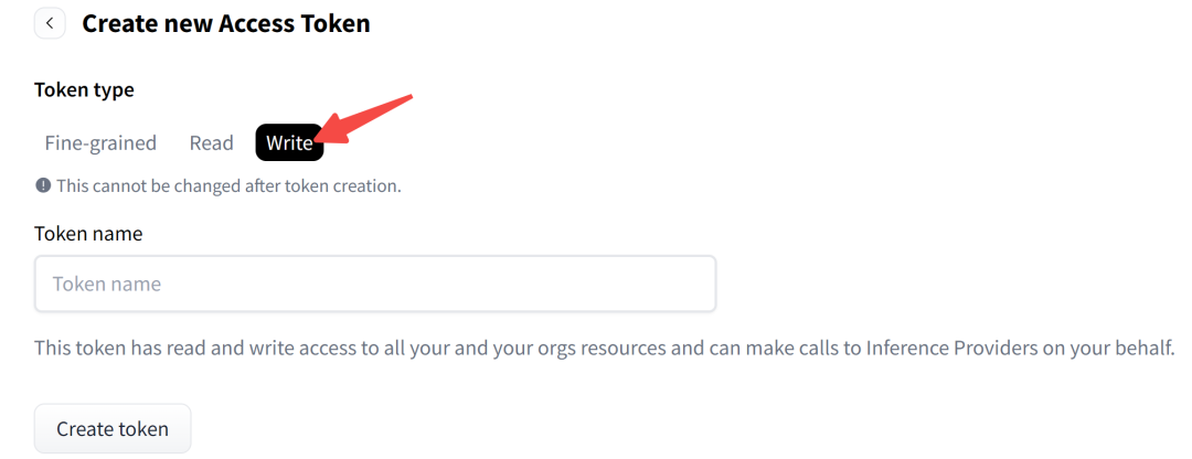 Token Type 选择 Write(因为需要写入 Dataset)