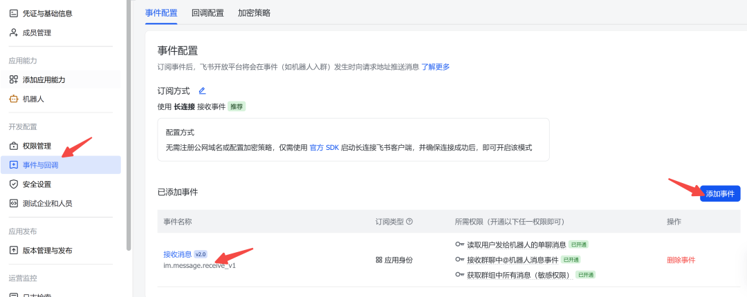配置事件回调地址