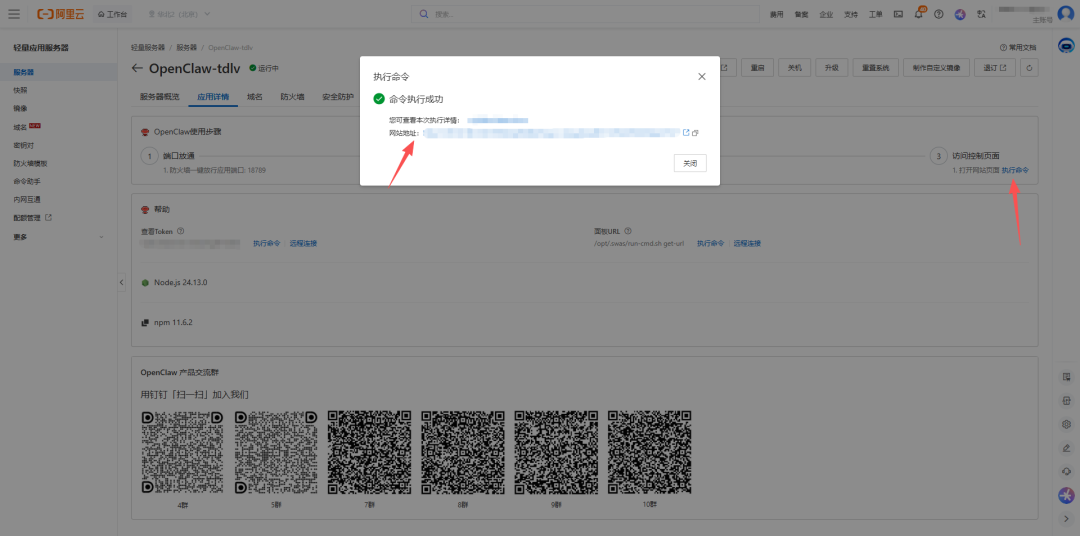 系统会输出OpenClaw的访问URL(格式通常为 http://[服务器IP]:[端口])