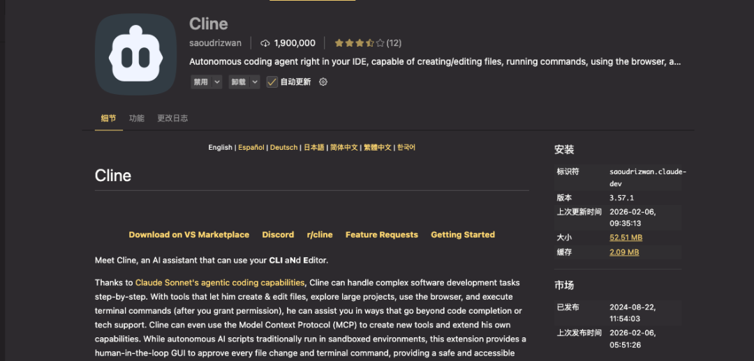 - 当前版本:Cline Extension