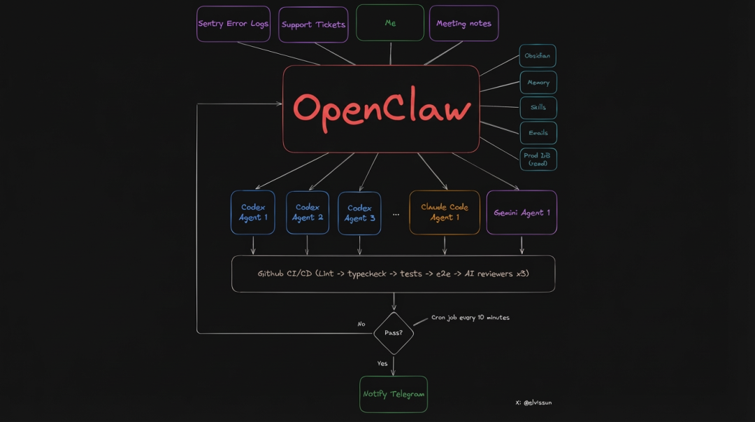 他将一套基于 OpenClaw + Codex + ClaudeCode 的智能体集群架构完整开源。