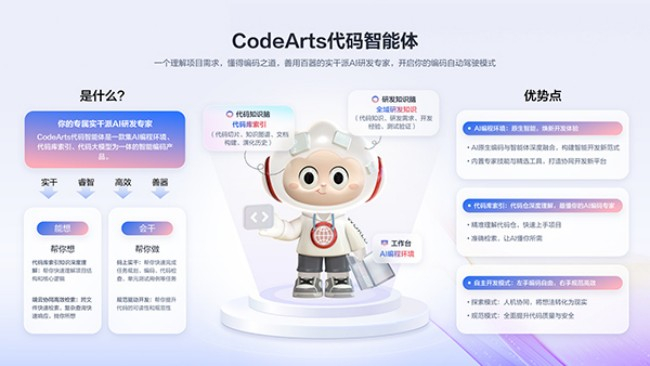 CodeArts” 码道 ” 是华为云打造的智能编码产品,深度融合 IDE、自主开发模式与代码大模型能力,支持项目级代码生成、代码续写、研发知识问答、单元测试用例生成等核心功能,可高效提升开发者研发效率,带来优质的智能化编码体验。” 码道 ” 把编程中所需要的编程环境、自主开发模式、代码库检索三个关键能力整合到一起,用户输入需求,AI 能直接写出代码。