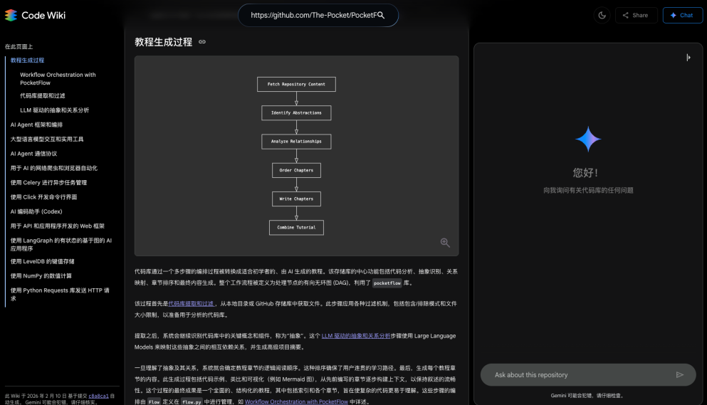 依托 Gemini 的长上下文能力,Code Wiki 在理解复杂系统与可视化表达上做得很扎实: