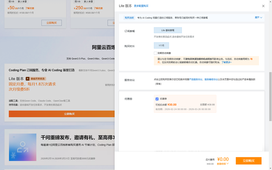 入门套餐门槛低,适合刚上手的用户,新用户获得优惠券抵扣,可以0元入手!