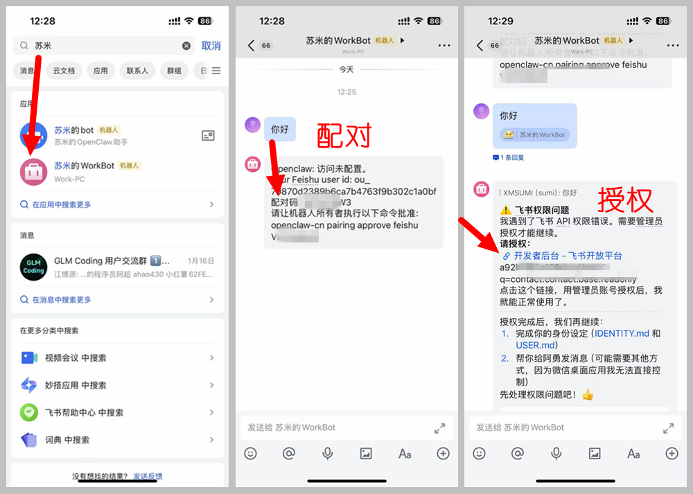 此步骤涉及飞书开放平台的应用创建与权限配置,是实现消息互通的核心。