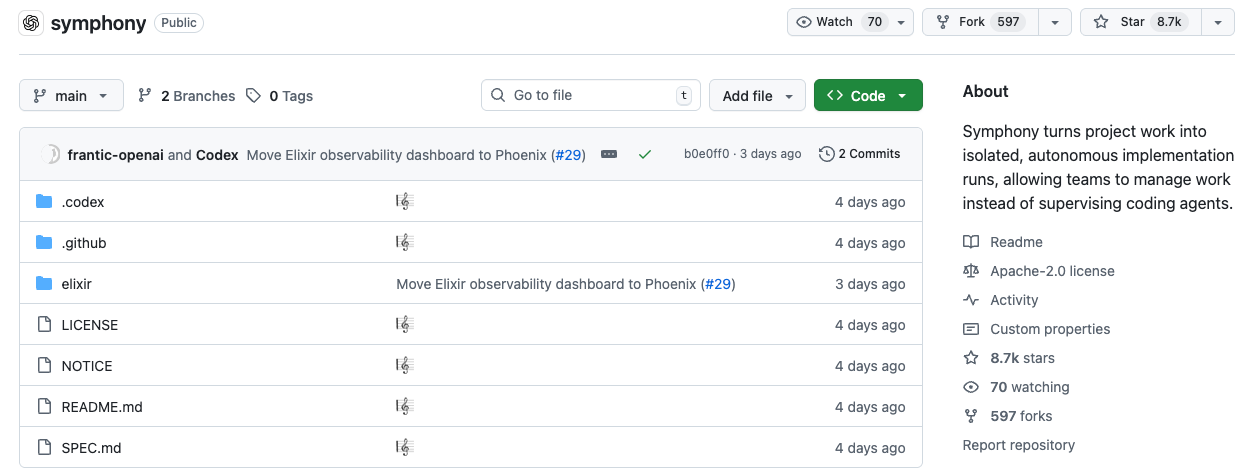 最近在浏览OpenAI的开源项目时,发现了一个名叫Symphony的工具,短短4天便获得8.7K星标。
