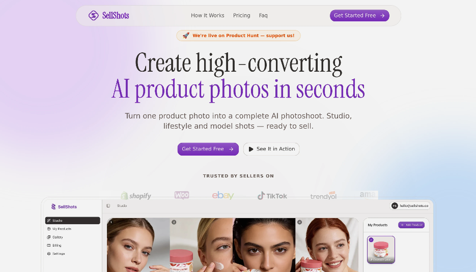SellShots 是一款专为电商卖家设计的 AI产品摄影工具。 它可以将你的产品照片转化为专业的摄影作品,适用于各种电商平台和营销场景。 通过它,你可以轻松获得高质量的图片,从而提升销量。