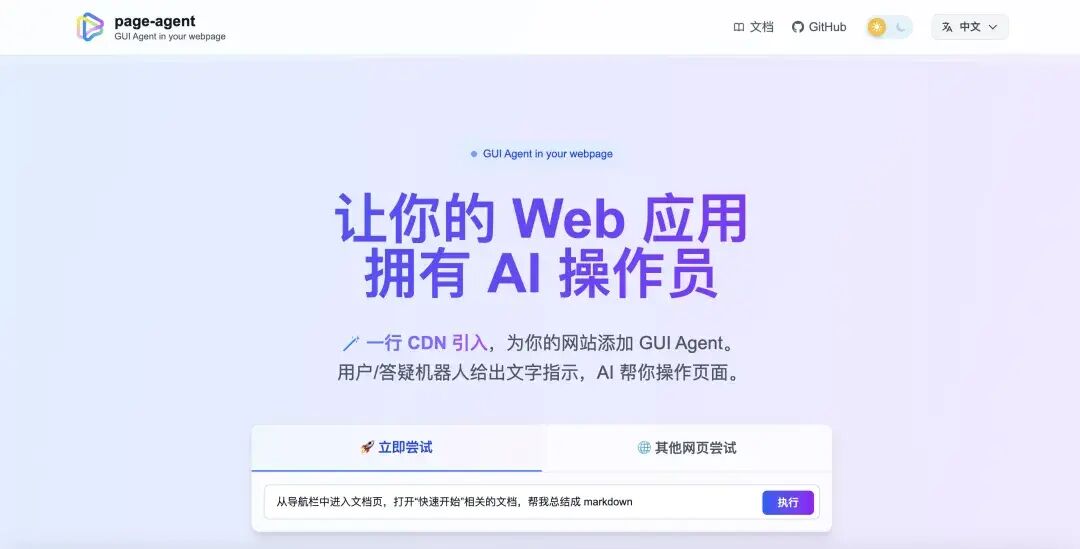 Page Agent 不仅提供 API,还内置了一个操作界面: