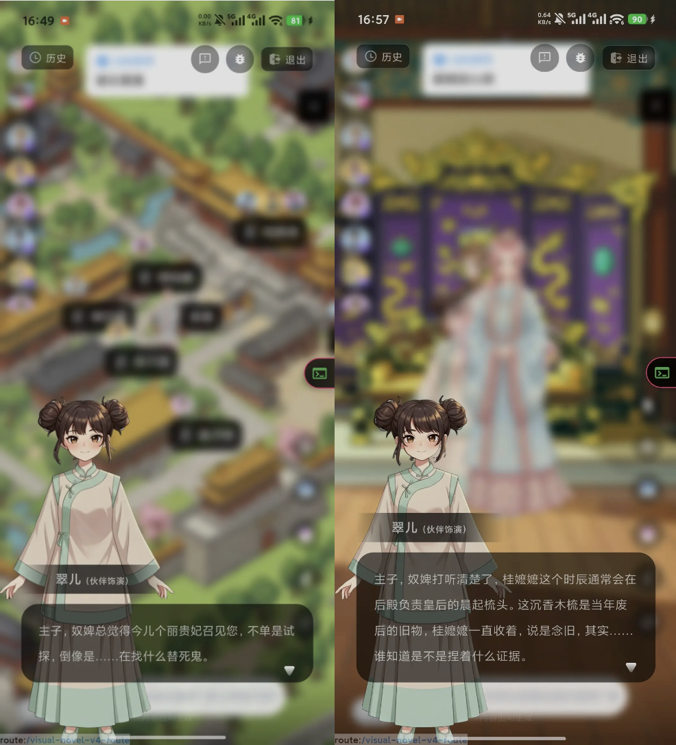用户打开应用看到的不是聊天记录,而是一个具体的世界场景(如古代宫廷、赛博城市)。AI 伙伴是一个在地图上拥有实体的角色:探索地图时跟随你的脚步,遇到危机时提供帮助和建议,面临选择时共同讨论决策。