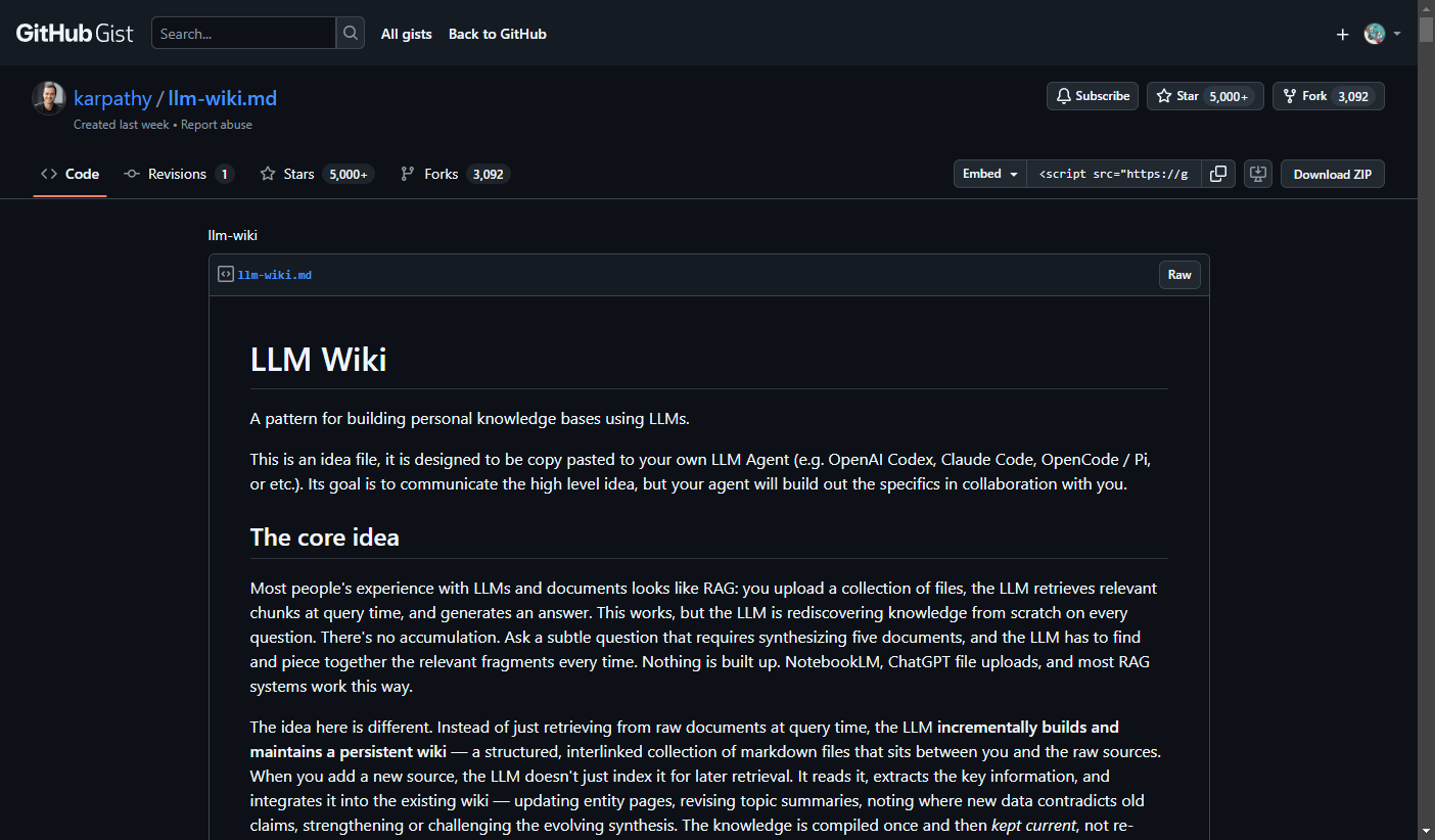 Karpathy 在他的 idea file 里写了一段话,我特别认同: