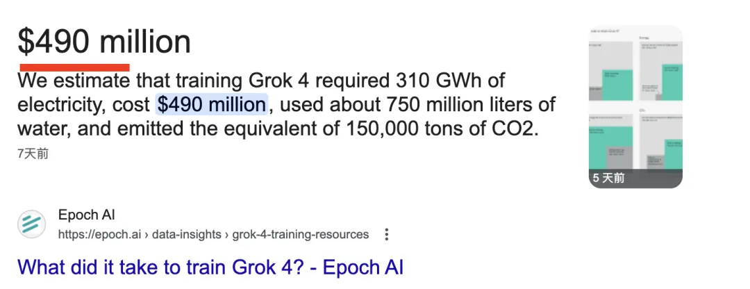 对比一下:Grok-4 的训练成本是 4.9亿美元,足足是 DeepSeek-R1 的 1689倍。