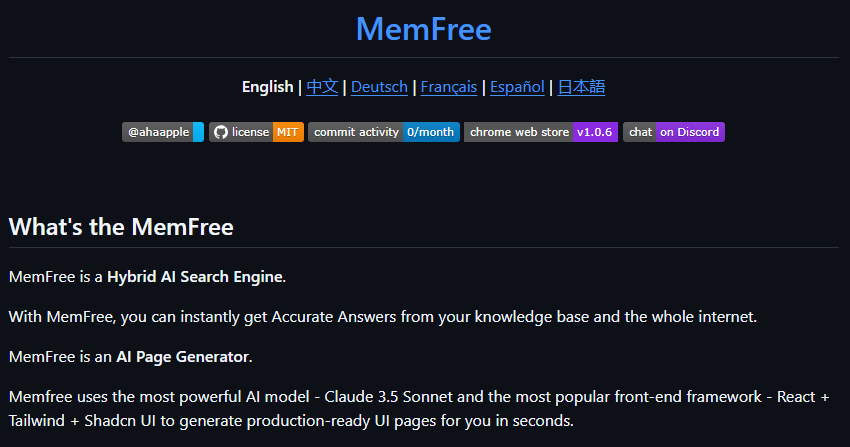 通过集成多种强大的 AI 模型(如 Claude、ChatGPT 和 Gemini)以及先进的前端框架(React + Tailwind + Shadcn UI),MemFree 不仅能提供精准的搜索,还能在内容生成上提供前所未有的效率提升。