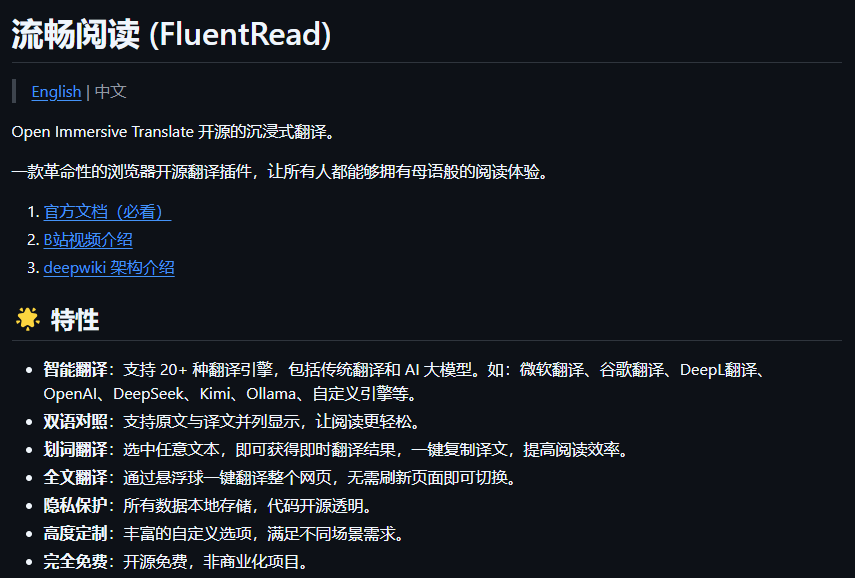 FluentRead,堪称沉浸式翻译的开源平替版,它不仅能实现快速翻译,还拥有出色的隐私保护功能,让你能在浏览网页时畅享无缝的多语言体验。