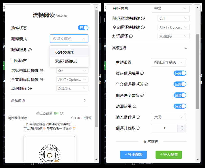FluentRead提供了丰富的自定义选项。用户可以根据需求定制快捷键、控制翻译引擎数量,甚至适配浏览器的深色模式。