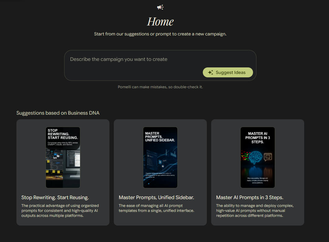 从体验上看,Pomelli 更像是一个“AI 品牌视觉助理”,自动帮你完成从素材提取、风格匹配到排版输出的闭环。