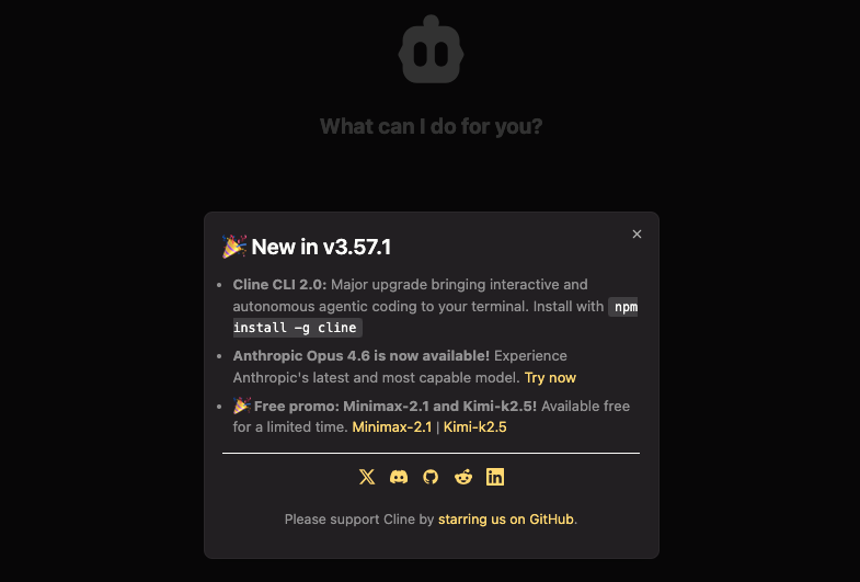 - 发布 Cline CLI 2.0,接入 Anthropic Opus 4.6 模型。