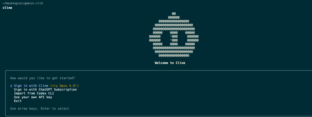 CLI 官方安装说明:https://cline.bot/cline-cli/