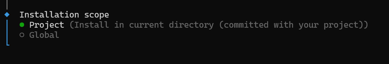 下一步是提示安装范围,嫌麻烦的直接全局安装,使用方向键选择 Global,进行下一步。