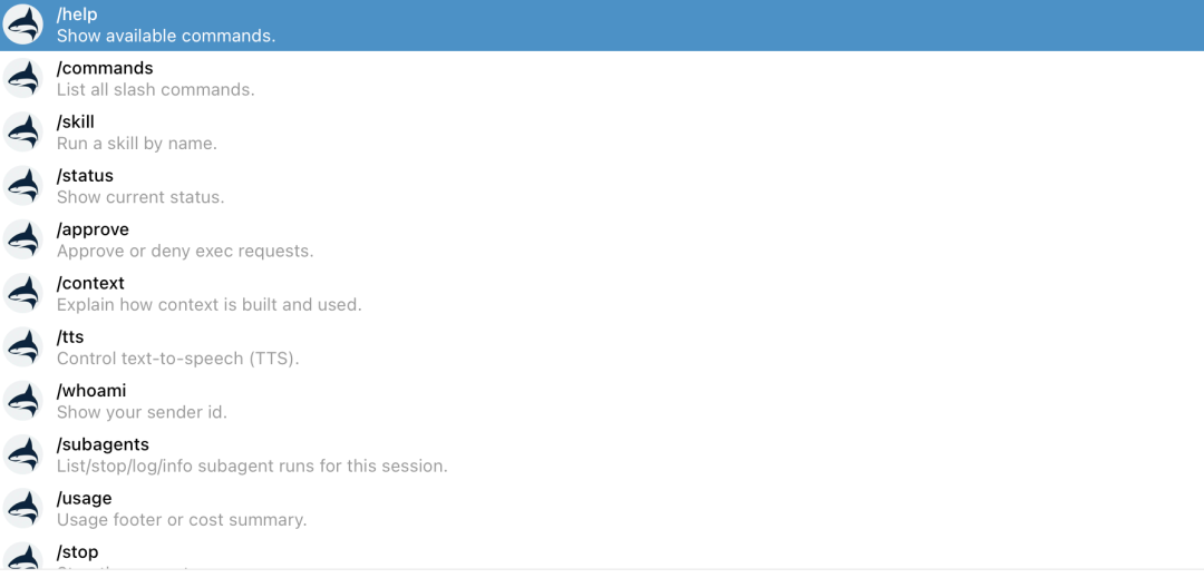 - 指令更友好:在我的 Telegram 场景里,NanoClaw 提供了一套快捷指令,新手无需理解各种配置项,上来就能用。