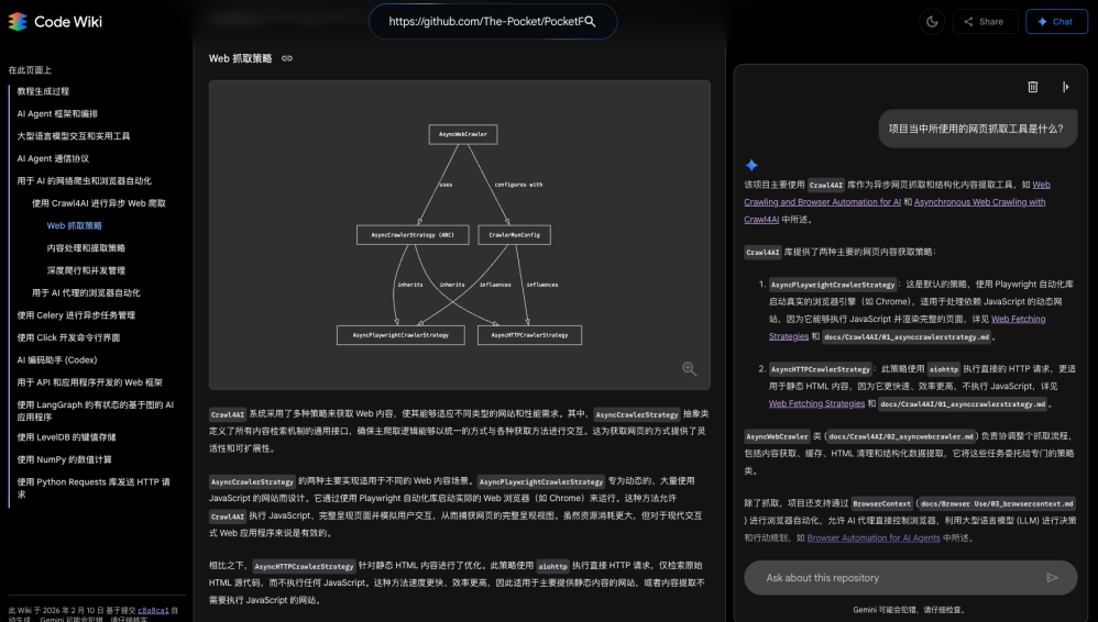 它像是嵌在代码仓库里的活体知识库,基于代码变更自动迭代文档: