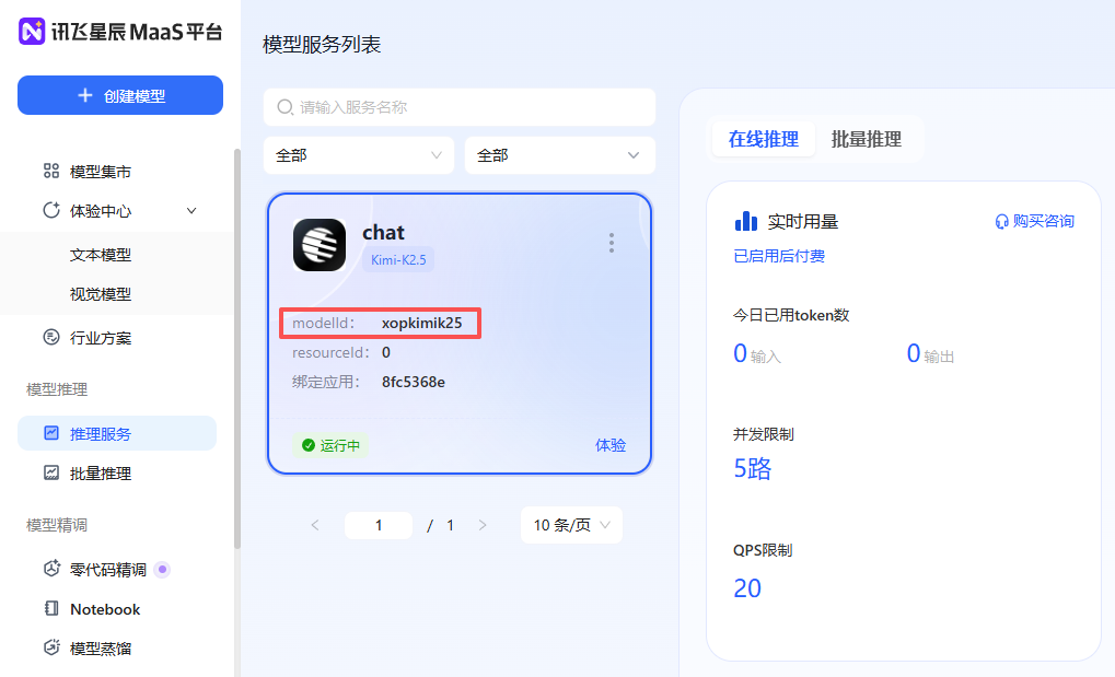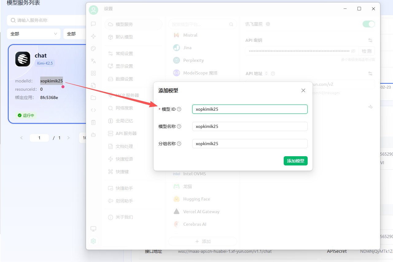 注意:在模型名称处填写“模型 ID”,千万不要填“模型名称”,而是页面上的modelId