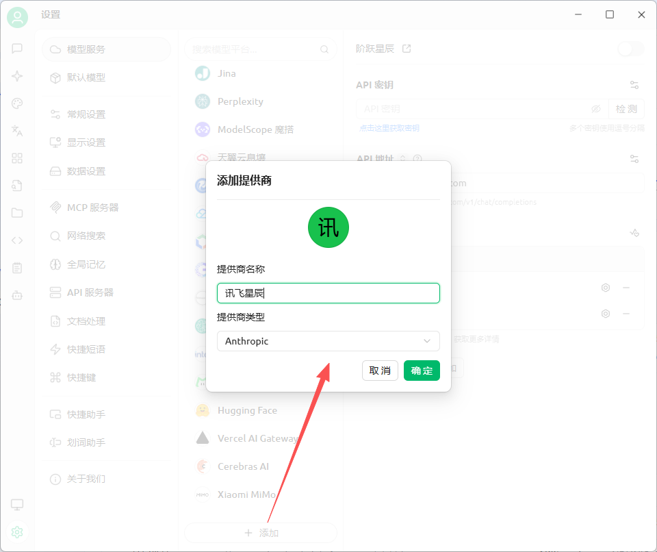 打开 Cherry Studio 客户端 - 设置 - 模型服务 - 添加提供商: