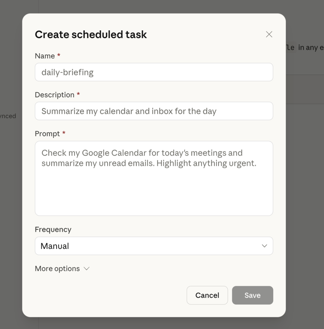 这次的 local scheduled tasks 也延续了 Cowork 一贯的设计思路,整体交互相当友好。
