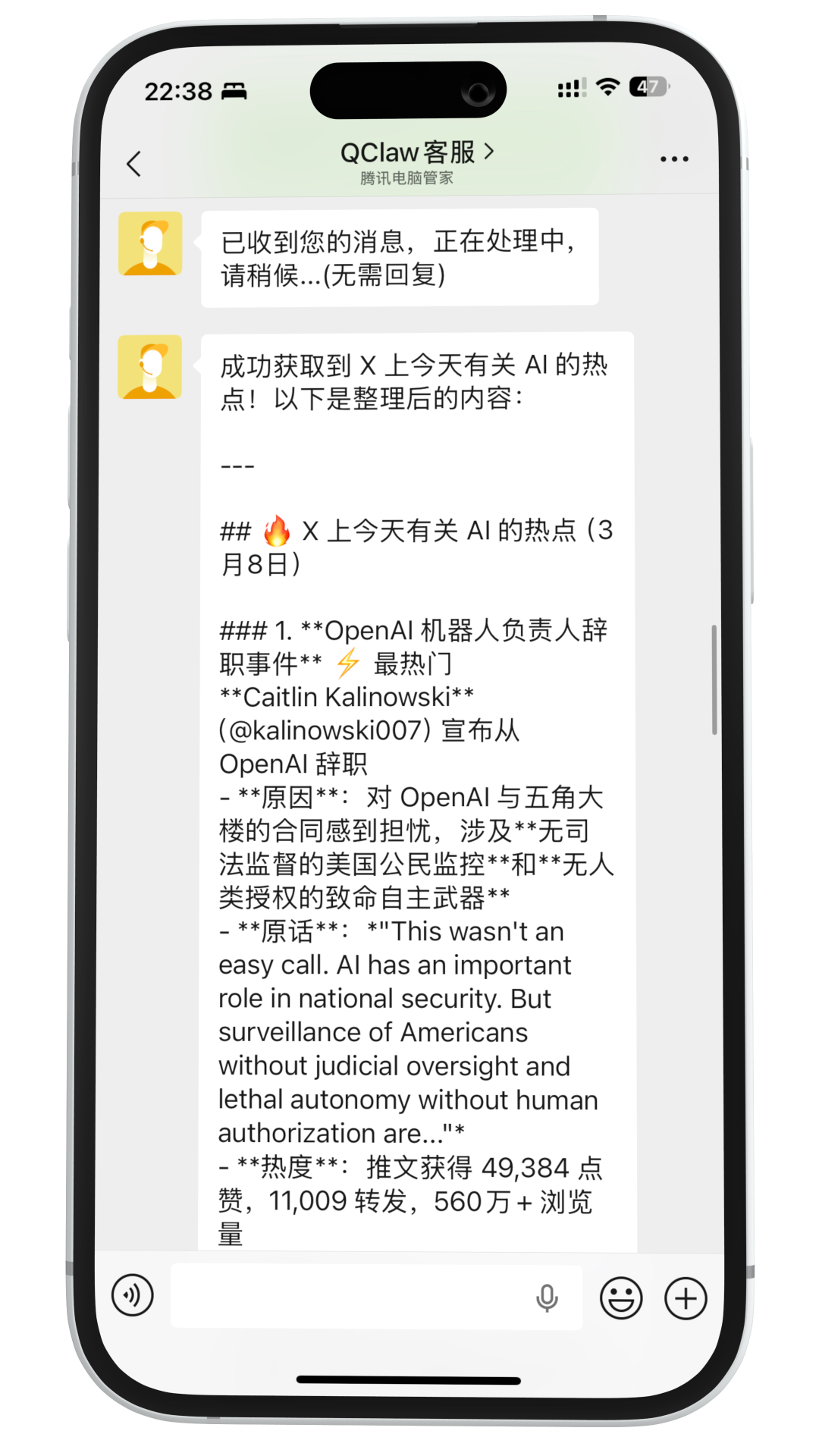 最早动作比较快的是飞书,随后钉钉也跟进,QQ 侧也有人在做,其他大厂相关产品大概率也会陆续出现。此前只有微信一直没什么动静,这也让不少人以为腾讯并不在意。