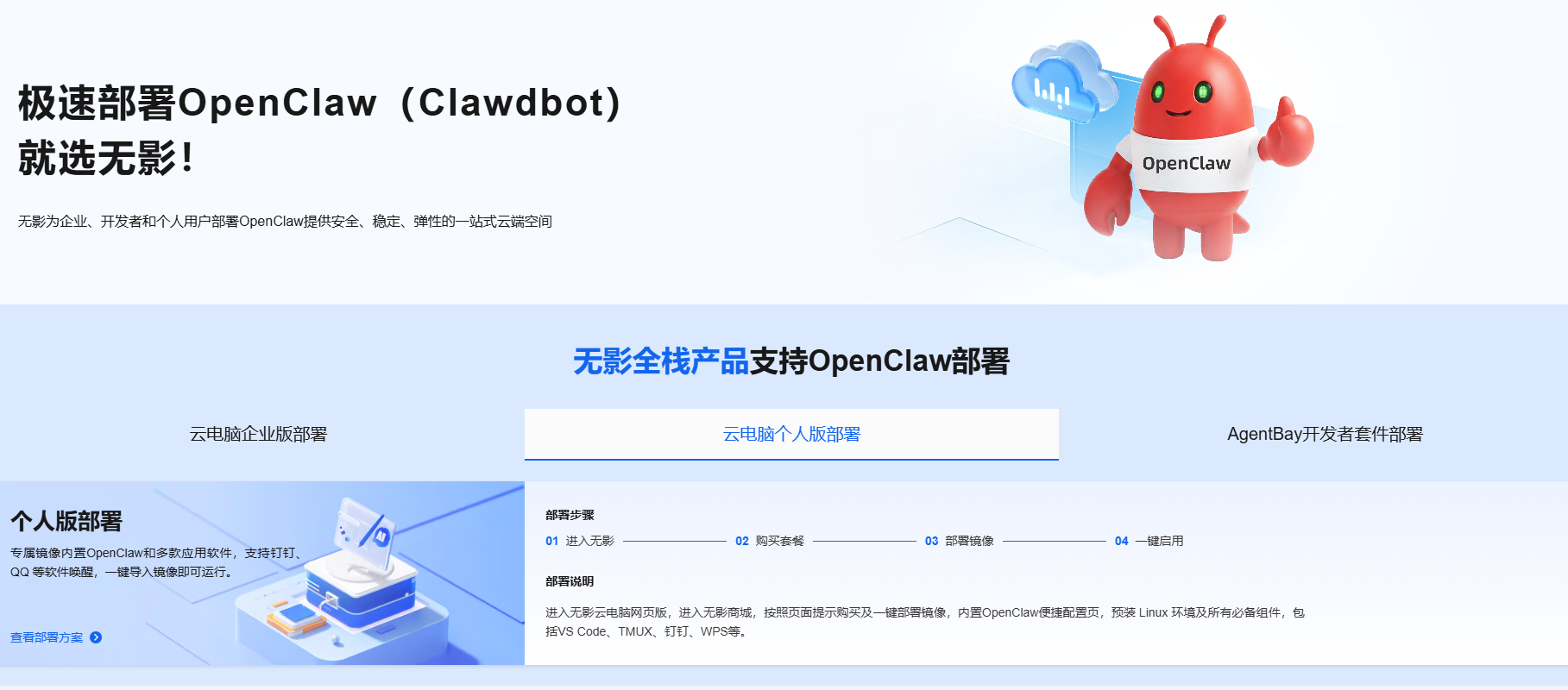 五、第三步:无影云电脑部署OpenClaw